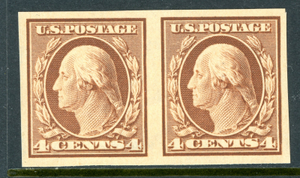 USA 1909 Washington 4¢ Brown Imperf Pair DL Wmk Scott #346 MNH Q322