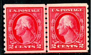 USA 1912 Washington 2¢ Carmine Perf 8½ Coil Line Pair SL Wmk Sc #413 Mint Q348