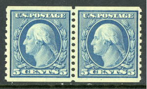 USA 1919 Washington 5¢ Blue Coil Pair Scott #496 MNH D18