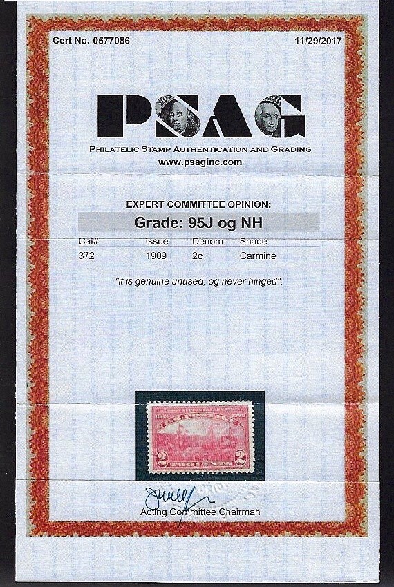 WCstamps: U.S. Scott #372 / 2c Hudson XF/SUP, Mint OGnh, 2017 PSAG Cert SMQ $350