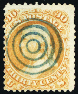 100, Used 30¢ With Bulls Eye Fancy Cancel Cat $950.00 Stuart Katz