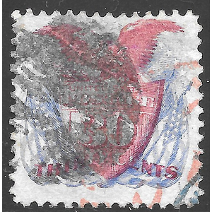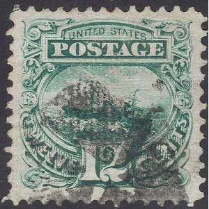 | #117 VF-12¢ 1869 PICTORIAL-S.S. Adriatic -Fresh with nice Cancel Scott #117 VF used 12¢ "S.S. Adriatic from the 1869 Pictorial series. Very fresh stamp. Centering is Great compared to what you'd usually especially since this series is nearly always poorly centered. Neat cancel too. Time to fill this spot in your collection today. BUY IT NOW!!