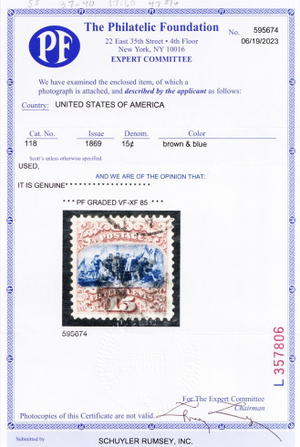 118, Used 15¢ VF/XF With PFC Graded 85 Certificate - Stuart Katz