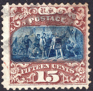 | #119 F-VF 15¢ 1869 PICTORIAL-Type II-Landing of Columbus-Fresh with nice Cancel Scott #119 F-VF used 15¢ "Landing of Columbus" Type II from the 1869 Pictorial series. Very fresh stamp. Centering is nice compared to what you'd usually especially since this series is nearly always poorly centered. Neat cancel too. Time to fill this spot in your collection today. BUY IT NOW!!
