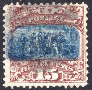 | #119 F-VF 15¢ 1869 PICTORIAL-Type II-Landing of Columbus-Fresh with nice Cancel Scott #119 VF used 15¢ Type II variety of Landing of Columbus from the 1869 Pictorial series. Very fresh stamp. Vignette is shifted wide to the left taking it quite a bit out of the frame. Centering is Great compared to what you'd usually especially since this series is nearly always poorly centered. Neatly cancelled too. Time to fill this spot in your collection today. BUY IT NOW!!