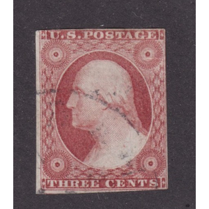 A stunner #11A, U.S. 3¢ 1851-57, plated as 91R1L, bottom row copy with left sheet margin, 4 margins, Relief B, color confirmed as Experimental Orange Brown (EOB), signed by noted expert W. Wilson Hulme on reverse, confirming color as EOB.