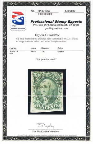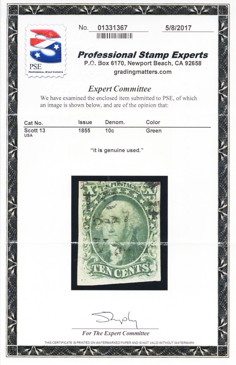 13, Used 10¢ Imperforate With Clean PSE Certificate - Stuart Katz