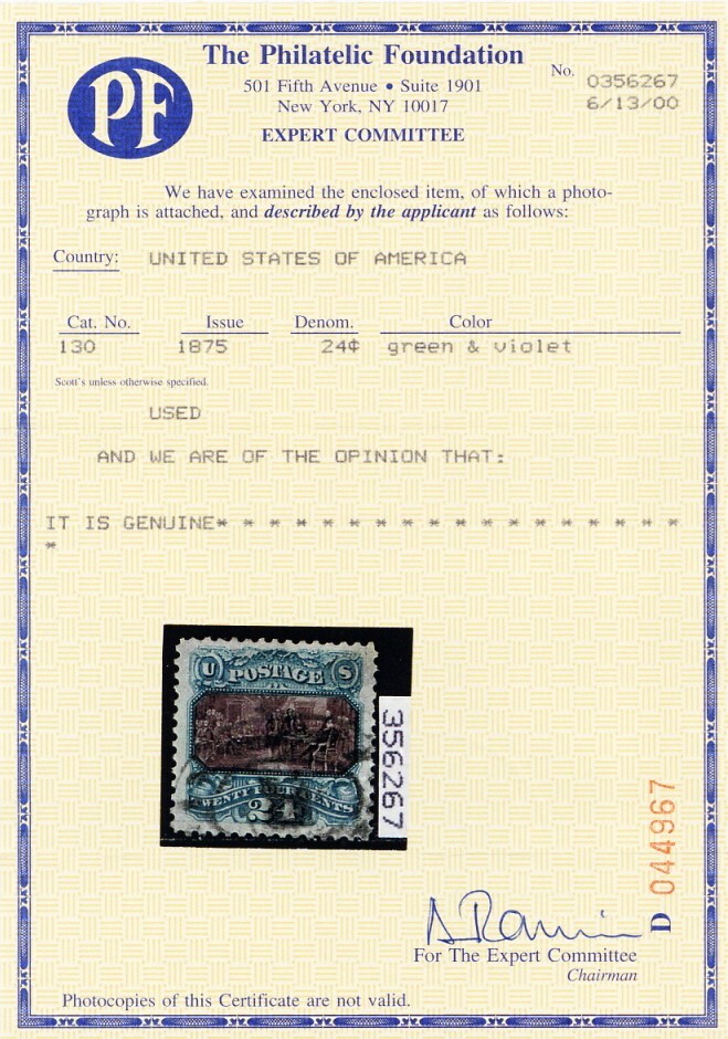 130, Used VF/XF 24¢ Re-issue - With PFC Certificate - Stuart Katz