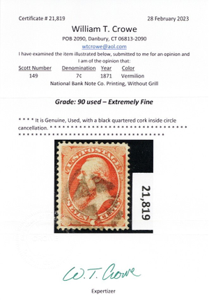 149, Used XF/Superb 7¢ With Graded 90 Certificate * Stuart Katz
