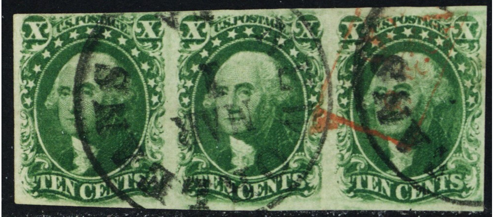 15, Used 10¢ Scarce Strip of Three Stamps F-VF SCV $650 - * Stuart Katz