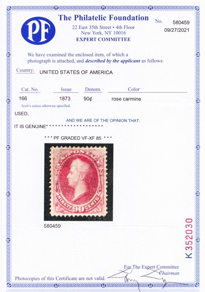 166, Used VF/XF 90¢ GEM - With PFC Graded 85 Certificate * Stuart Katz
