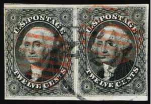 17, Used 12¢ VF Pair With Red Cancels CV $660.00 * Stuart Katz