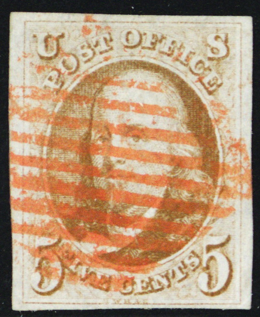 1b, Used 5¢ Orange Brown XF - Four Margins With PFC Certificate - Stuart Katz
