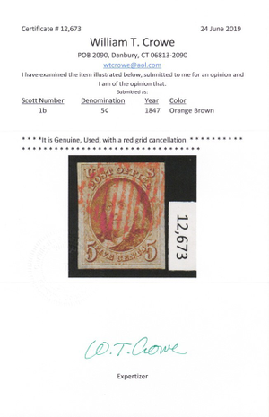 Due to the high cost of obtaining certificates we will only refund the cost of the stamp and not the cost of the certificate for stamps that sell for less than $250 that come back with a negative certificate. Stamps that sell for above $250 will receive a full refund for both the price of the stamp and cost of the certificate if it should come back not as described. For U.S. stamps only certificates from either APS, PSE or from the Philatelic Foundation are accepted, however "graded" certificates or "encased" items are not accepted.