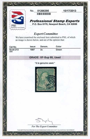 213, 2¢ American Banknote, Used, PSE Graded XF-Sup 95 Certificate, SMQ $150