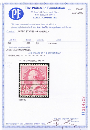 220, Used 2¢ XF With Graded 90 PFC Certificate - Stuart Katz