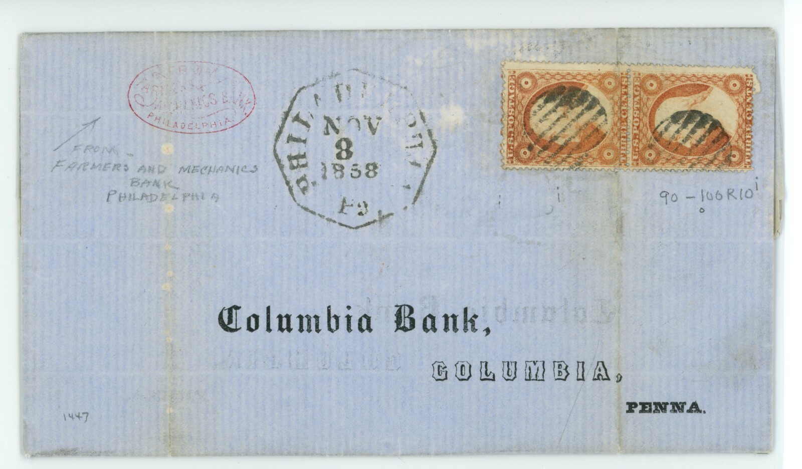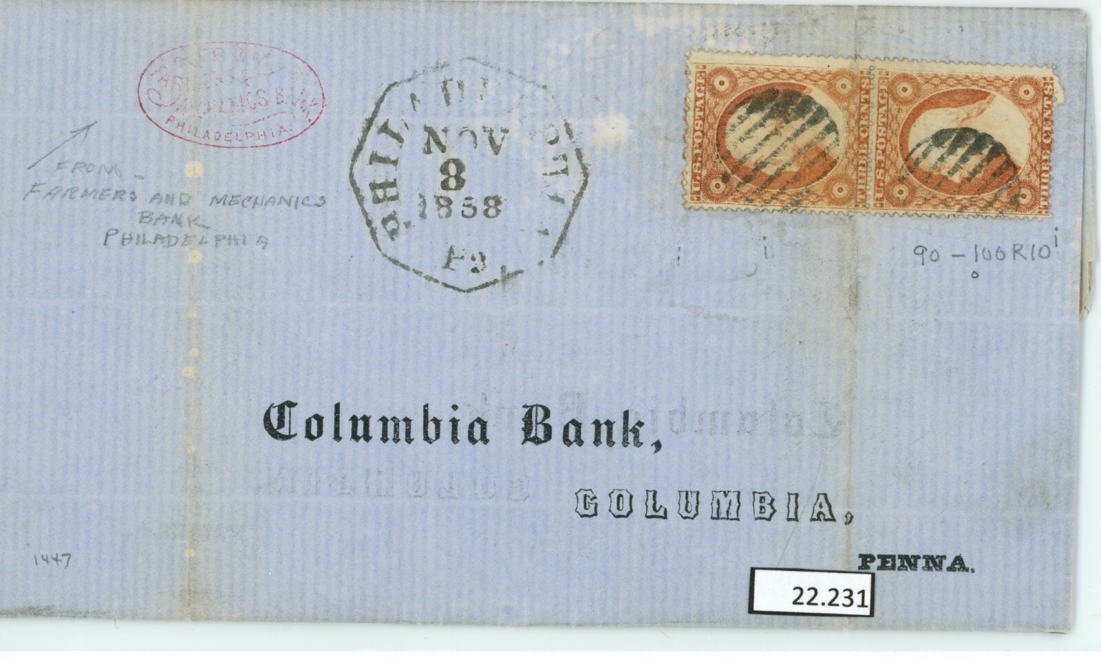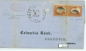 (22231 ) US stamp scott# 26a pair (on cover - rare)