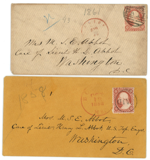 (22335) US scott# 26 (lot of 2 covers with 2 different types of paid cancels)