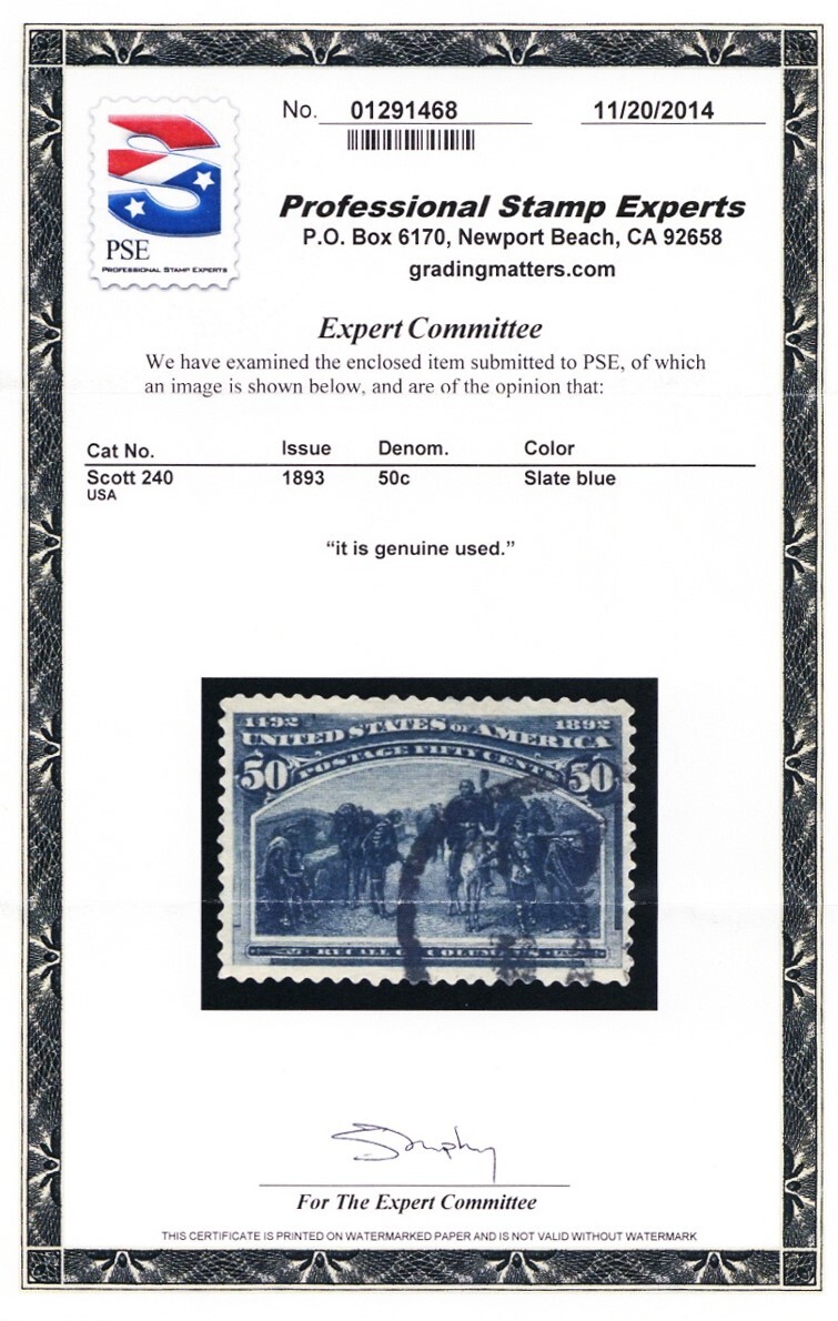 240, Used XF 50¢ Columbian - With PSE Certificate * Stuart Katz