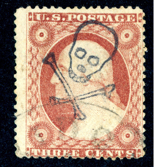 (25129 ) US stamp scott# 26 Used (Skull and Crossbones cancel - scarce)