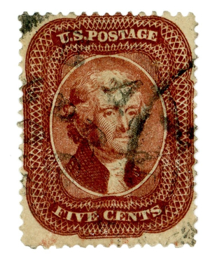(25140 ) US stamp scott# 28 Used (1857-61 5c Jefferson, Red Brown, Type I)