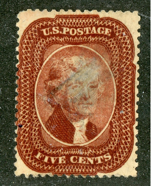 (25142 ) US stamp scott# 28 Used (1857-61 5c Jefferson, Red Brown, Type I)