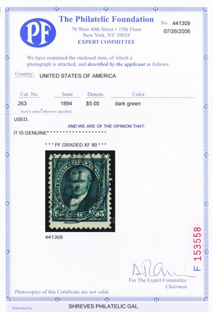 263, Used XF $5 - Large Margins PFC Graded 90 Certificate - WoW * Stuart Katz