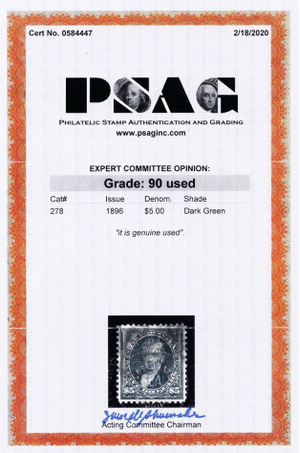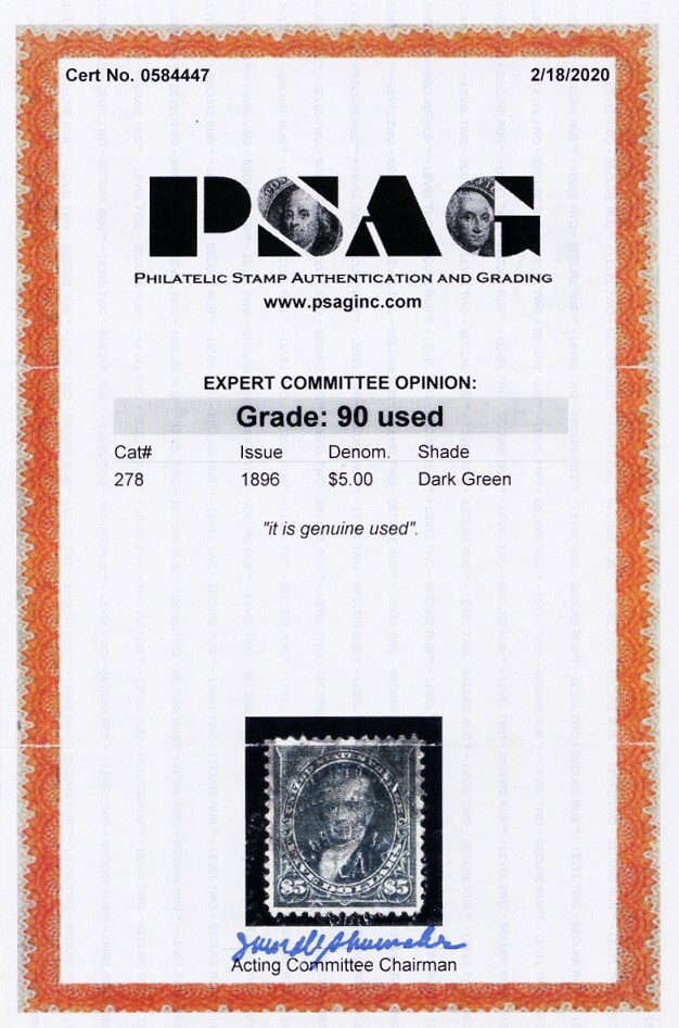 278, Used $5 XF Centering - With PSAG Graded 90 Certificate * Stuart Katz