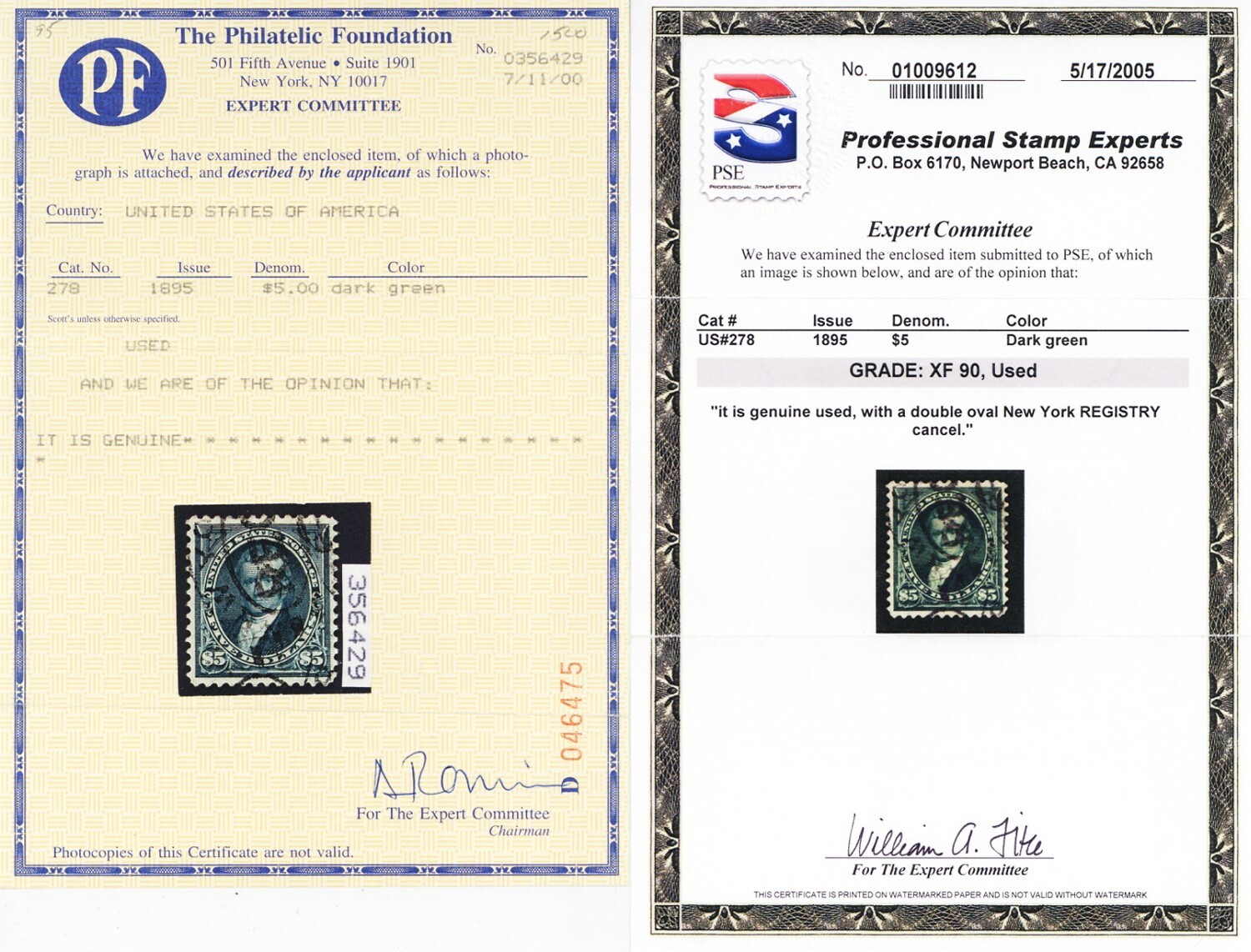 278, Used XF $5 - With Graded 90 PSE & PF Certificate * Stuart Katz Description: