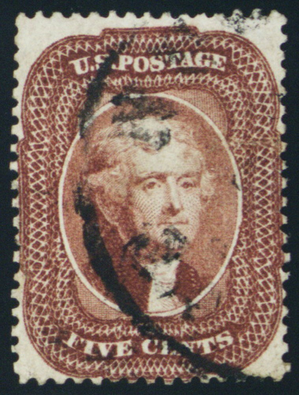 28, Used 5¢ F/VF RARE Red Brown Color Cat $1,100.00 - Stuart Katz