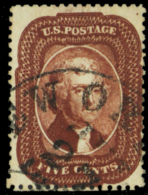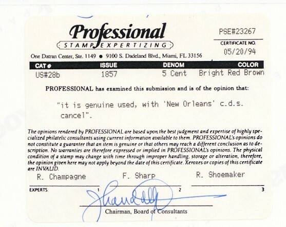 28b, Used 5¢ Bright Red and Brown SOUND With PSE Cert CV $2250.00 * Stuart Katz