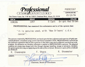 Due to the high cost of obtaining certificates we will only refund the cost of the stamp and not the cost of the certificate for stamps that sell for less than $250 that come back with a negative certificate. Stamps that sell for above $250 will receive a full refund for both the price of the stamp and cost of the certificate if it should come back not as described. For U.S. stamps only certificates from either APS, PSE or from the Philatelic Foundation are accepted, however "graded" certificates or "encased" items are not accepted.