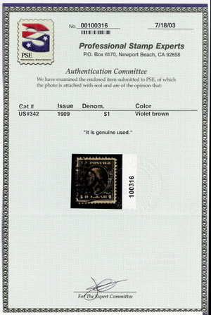 342, Used VF $1 With PSE Certificate * Stuart Katz