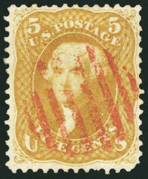 67, Used 5¢ - Nice Sound Stamp With Red Grid Cancel SCV $810- Stuart Katz