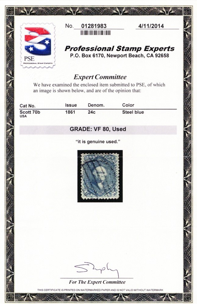 70b, Used VF 24¢ Steel Blue - With PSE Graded "85" And PFC * Stuart Katz