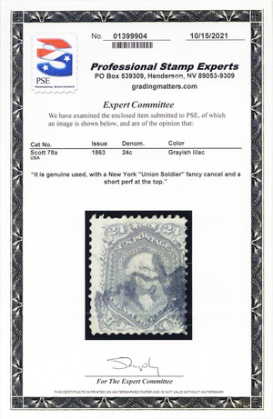 78a, Used 24¢ Sound Stamp - Union Soldier Fancy Cancel - PSE - Stuart Katz