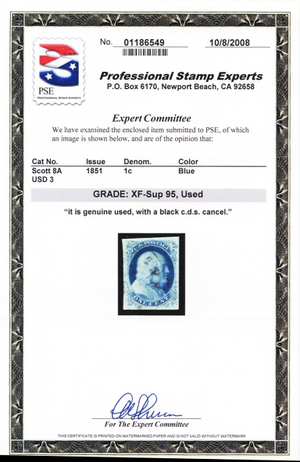 8A, Used XF/Superb 1¢ GEM - With PSE Graded 95 & PFC Certificates * Stuart Katz