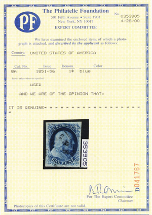 No refunds will be made after 60 days after the sale date unless extra time is granted. Due to the high cost of obtaining certificates we will only refund the cost of the stamp and not the cost of the certificate. For U.S. stamps only certificates from either APS, PSE or from the Philatelic Foundation are accepted, however "graded" certificates or "encased" items are not accepted.