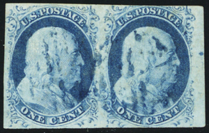 9, Used F-VF 1¢ Pair With Nice Light Blue Cancel SCV $210+ * Stuart Katz