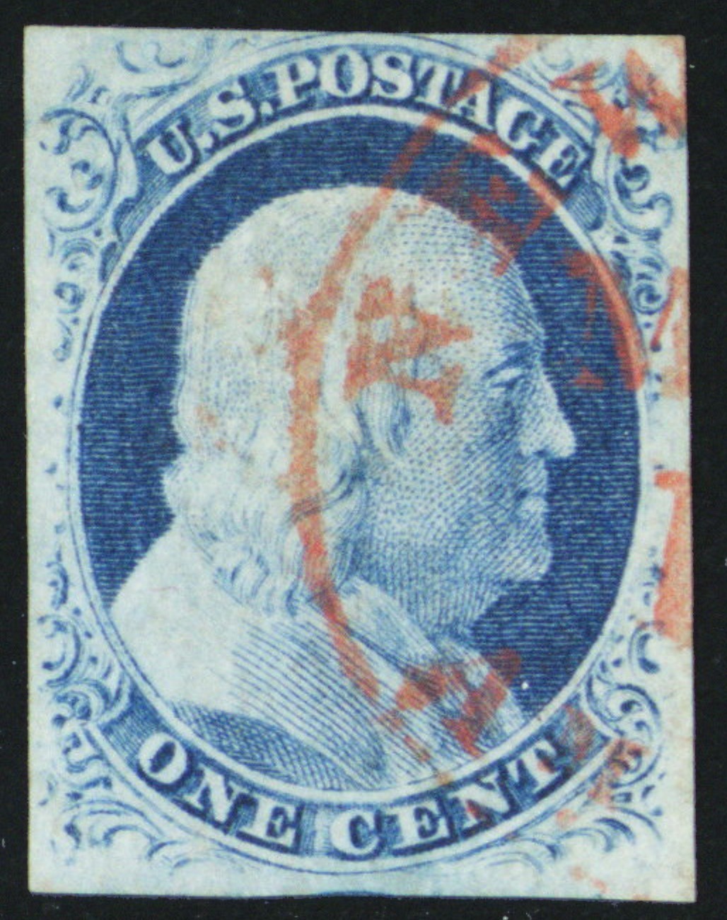 9, Used VF 1¢ Nice Clean Sound Stamp With Red Cancel * Stuart Katz