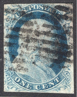 #9 VF USED-Interesting Cancel-1¢ Benjamin Franklin Type IV-L@@K! (REM #9-4)