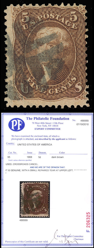 95 Used 5¢ Brown Crossroads Cancel With PFC Cat $900.00 - Stuart Katz