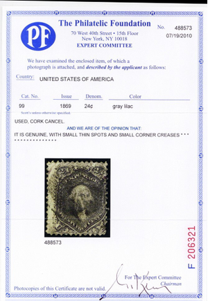 99, Used 24¢ (minor flaws) With PFC Certificate CV $1700.00 - Stuart Katz