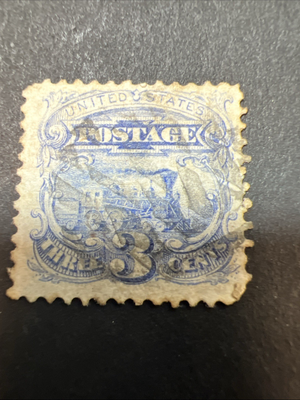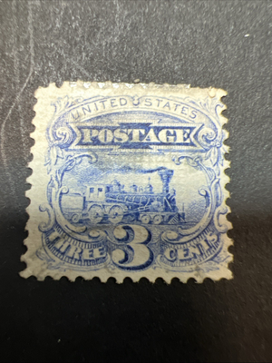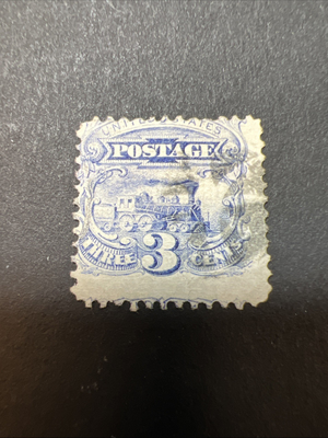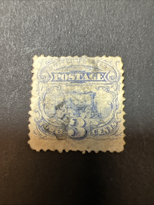 Scott #114 Locomotive 3 cent Used- 1869 w/ grill-US. Shipped with USPS Ground Advantage.