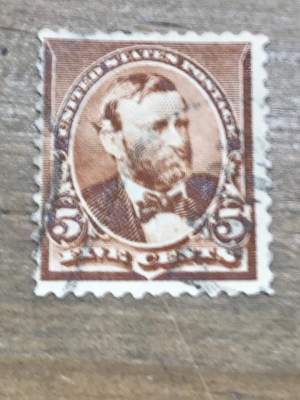 Scott# 223 Used-5 cent Grant 1890-1893 Light Cancel. Shipped with USPS First Class Package.