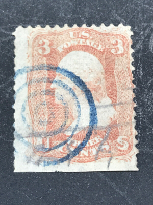 Scott#94- 1867 Washington 3¢ Red F Grill Used NG. Shipped with USPS First Class Package.