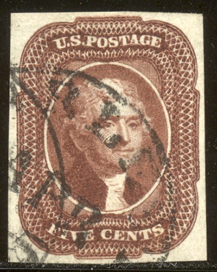 Scott #12: 5c Red Brown Centering & Condition: Used. Fresh. Rich color. Extremely Fine with large margins all around. CHOICE! A Foundation certificate accompanies. Reverse (Gum Side): N/A Faults / Imperfections: None The item pictured is the actual item you are purchasing, unless otherwise noted. I also offer an interest-free layaway plan. Ask me about it!" All items purchased will be mailed a day or two after payment is received. --------------------------------------------------------------------------------