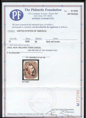 Scott #12: 5c Red Brown Centering & Condition: Used. Rich color. VF/XF and CHOICE. Reverse (Gum Side): N/A Faults / Imperfections: None The item pictured is the actual item you are purchasing, unless otherwise noted. I also offer an interest-free layaway plan. Ask me about it!" All items will be mailed a day or two after payment is received. --------------------------------------------------------------------------------