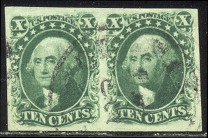 Scott #14: 10c Green, Type II Centering & Condition: Used. VF/XF and CHOICE Pair. Reverse (Gum Side): N/A Faults / Imperfections: None The item pictured is the actual item you are purchasing, unless otherwise noted. I also offer an interest-free layaway plan. Ask me about it!" All items will be mailed a day or two after payment is received. --------------------------------------------------------------------------------