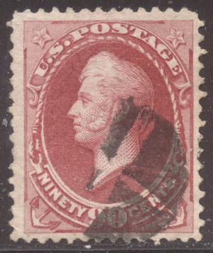 Scott #155: 90c Carmine Centering & Condition: Used. Rich color. Very Fine. Reverse (Gum Side): N/A Faults / Imperfections: None The item pictured is the actual item you are purchasing, unless otherwise noted. I also offer an interest-free layaway plan. Ask me about it!" All items purchased will be mailed a day or two after payment is received. --------------------------------------------------------------------------------
